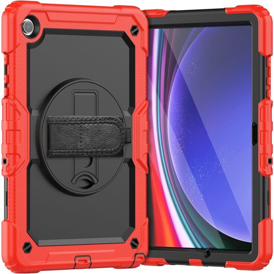 Mobigear SureGrip Xtreme Samsung Galaxy Tab A9 Plus (2023) Hülle Kunststoff,Silikon Backcover + Schulterträger + Ständer - Rot