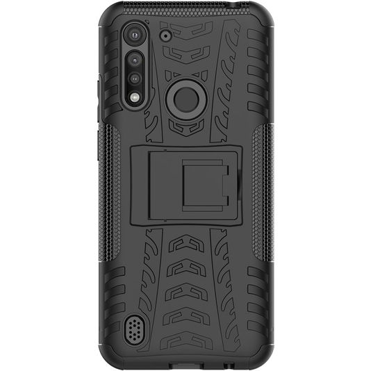Mobigear Tire Motorola Moto G8 Power Lite Hülle Hardcase Backcover Stoßfest mit Ständer - Schwarz