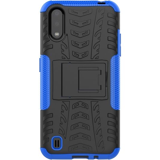 Mobigear Tire Samsung Galaxy A01 Hülle Hardcase Backcover Stoßfest mit Ständer - Schwarz / Blau