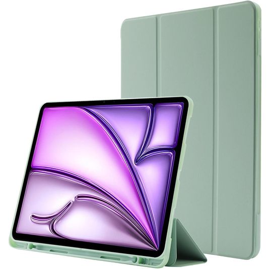 Mobigear Tri-Fold Gel iPad Air 13 Zoll (2026) Hülle TPU,Kunstleder Klapphülle + Stifthalter - Grün