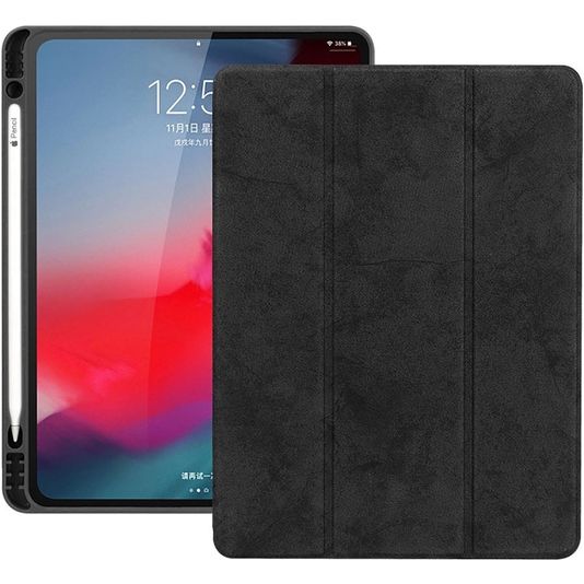 Mobigear Tri-Fold Gel iPad Pro 12.9 Zoll (2018) Hülle TPU,Kunstleder Klapphülle + Stifthalter - Schwarz