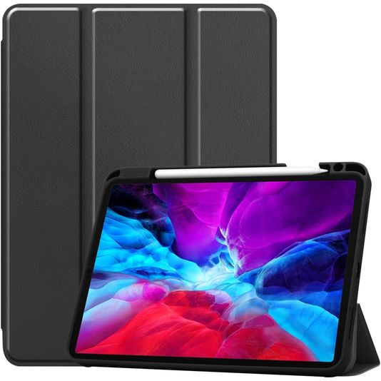 Mobigear Tri-Fold Gel iPad Pro 12.9 Zoll (2020) Hülle TPU,Kunstleder Klapphülle + Stifthalter - Schwarz