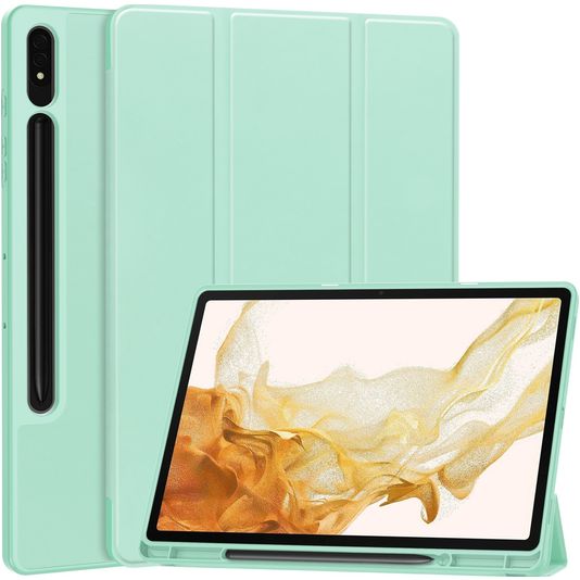 Mobigear Tri-Fold Gel Samsung Galaxy Tab S9 Plus Hülle TPU,Kunstleder Klapphülle + Stifthalter - Türkis