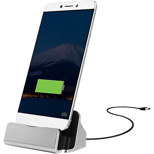 Geben Sie Ihrem Telefon einen schönen Platz auf Ihrem Schreibtisch oder Nachttisch und laden Sie es gleichzeitig mit dieser Mobigear USB-C Dockingstation auf.
