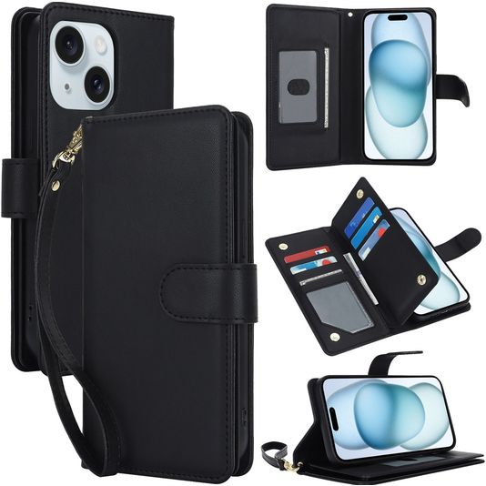 Mobigear Wallet iPhone 15 Hülle Klapphülle Geldbörse - Schwarz
