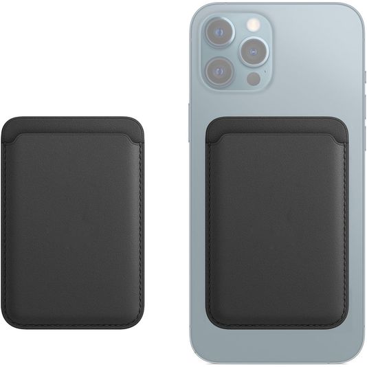 Der Mobigear Wallet MagSafe-kompatible Kartenhalter ist in der Farbe schwarz erhältlich und besteht aus luxuriösem hochwertigem Kunstleder.