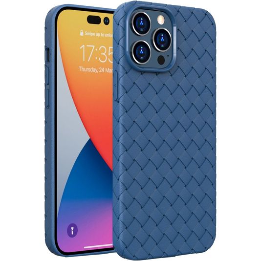 Mobigear Woven iPhone 14 Pro Max Hülle Flexibles TPU Backcover - Dunkelblau