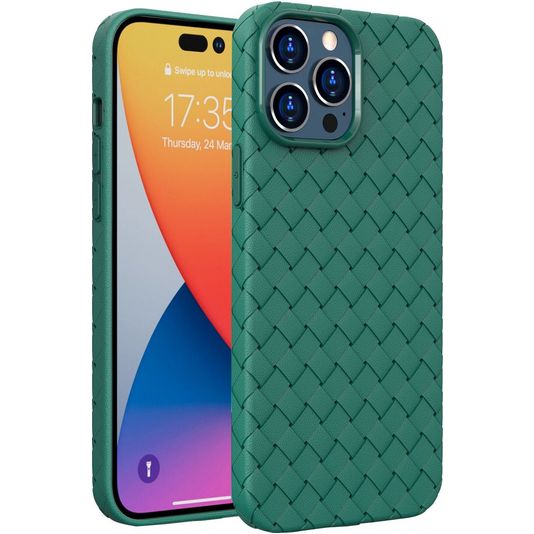 Mobigear Woven iPhone 14 Pro Max Hülle Flexibles TPU Backcover - Grün