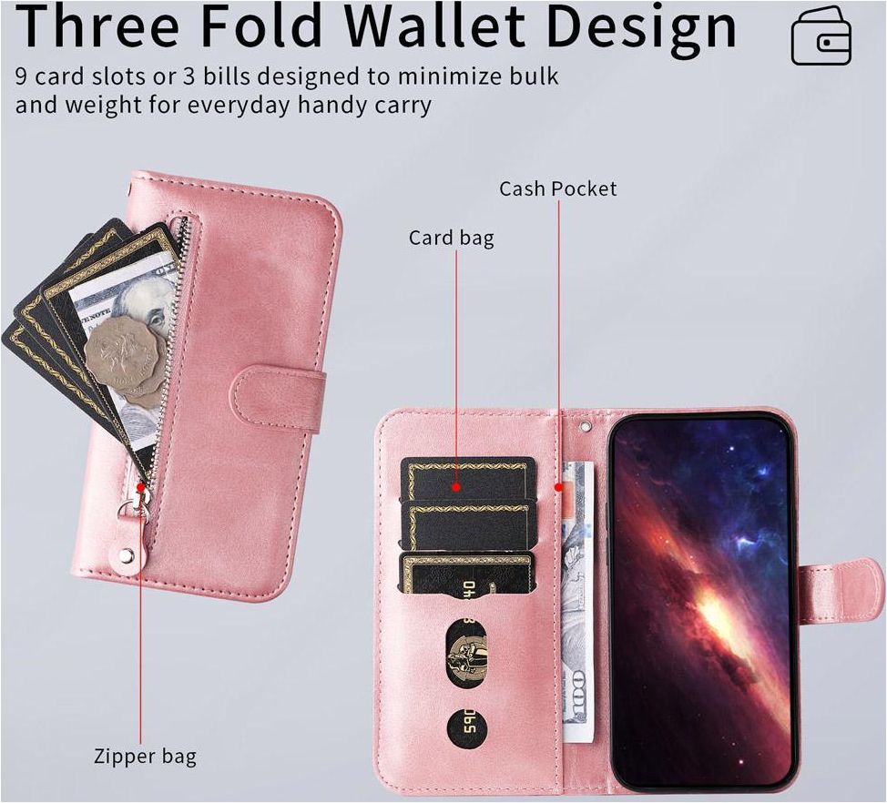 Mit dieser praktischen Hülle kannst du nicht nur dein Handy schützen. Dank ihres cleveren Designs kannst du jetzt auch ohne lose Brieftasche ausgehen. Es gibt ein spezielles Fach für Münzen und ein Fach, in dem du Geldscheine aufbewahren kannst.