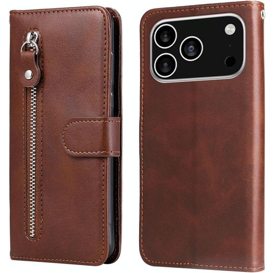 Mobigear Zipper iPhone 17 Pro Hülle Klapphülle Geldbörse - Braun