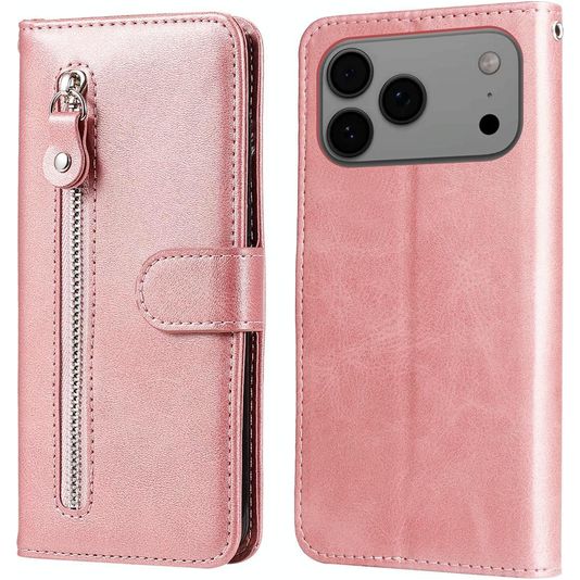 Mobigear Zipper iPhone 17 Pro Max Hülle Klapphülle Geldbörse - Roségold