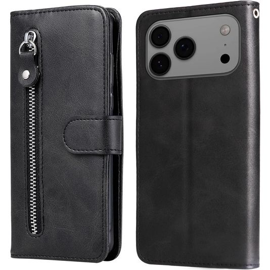 Mobigear Zipper iPhone 17 Pro Max Hülle Klapphülle Geldbörse - Schwarz