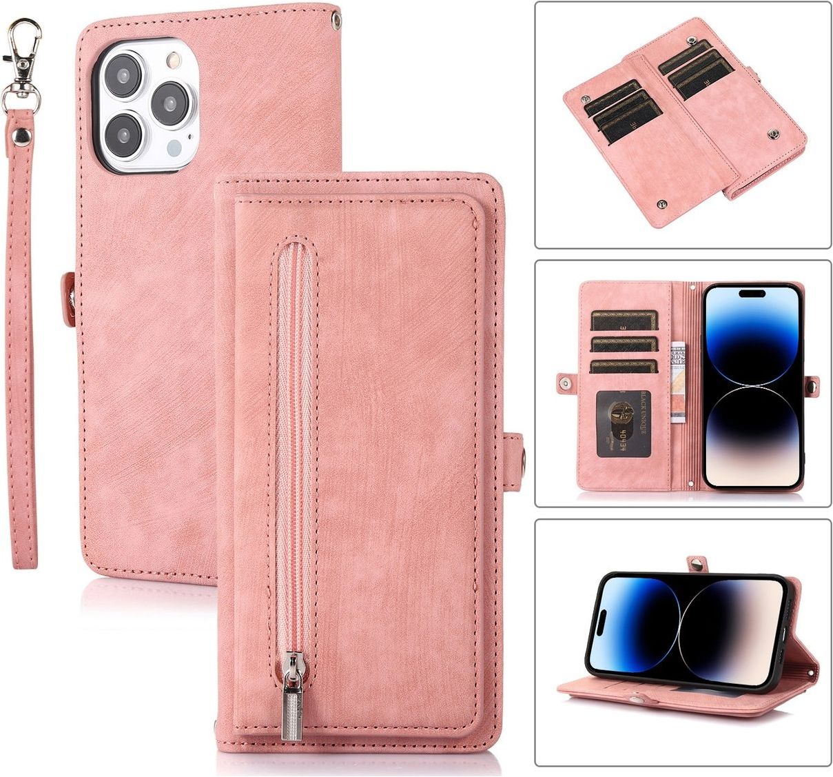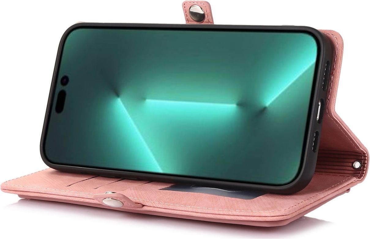 Mobigear Zipper iPhone 14 Pro Max Hülle Klapphülle Geldbörse - Roségold