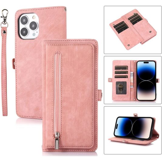 Mobigear Zipper iPhone 14 Pro Hülle Klapphülle Geldbörse - Roségold