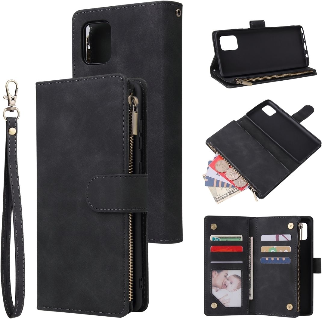 Mobigear Zipper Samsung Galaxy Note 10 Lite Hülle Klapphülle Geldbörse - Schwarz