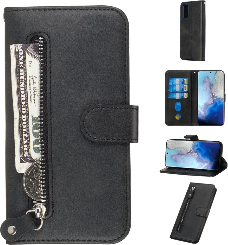 Mobigear Zipper Samsung Galaxy S20 Hülle Klapphülle Geldbörse - Schwarz