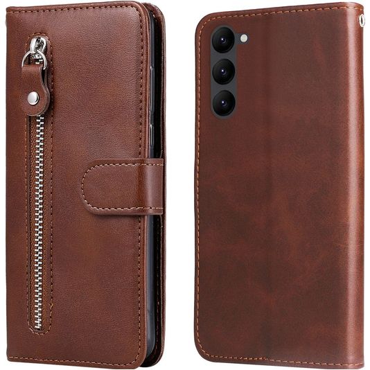 Mobigear Zipper Samsung Galaxy S23 Hülle Klapphülle Geldbörse - Braun