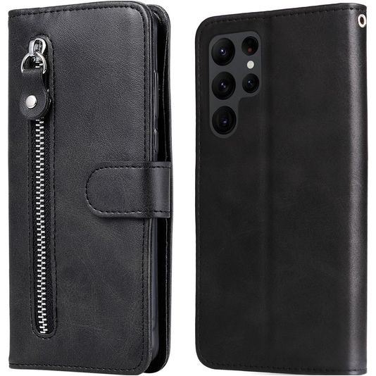 Mobigear Zipper Samsung Galaxy S23 Ultra Hülle Klapphülle Geldbörse - Schwarz