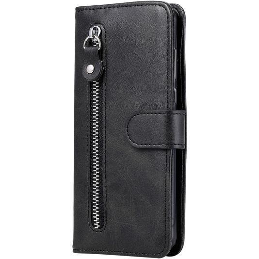 Mobigear Zipper Xiaomi Redmi Note 9 Hülle Klapphülle Geldbörse - Schwarz