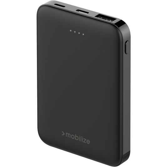 Mit dieser Mobilize Powerbank können Sie Ihr Handy unterwegs auch ohne Steckdose aufladen. Die Powerbank ist in der Farbe schwarz gehalten. Diese kompakte Powerbank hat eine Kapazität von 5.000 mAh. Das ist genug, um die meisten Smartphones etwa ein Mal vollständig aufzuladen. Wenn Sie ein Tablet aufladen möchten, benötigen Sie eine Powerbank mit höherer Kapazität. Die Powerbank verfügt über 2 USB-A / USB-C-Anschlüsse. An diese können Sie jedes USB-A / USB-C Kabel anschließen, um Ihr Gerät aufzuladen. Die Powerbank wird mit einem Ladekabel geliefert, um die Powerbank selbst aufzuladen. Um ein Gerät anzuschließen, benötigen Sie ein zusätzliches Kabel. Außerdem benötigen Sie einen USB-Adapter, um die Powerbank aufzuladen. Dieser ist nicht im Lieferumfang enthalten.