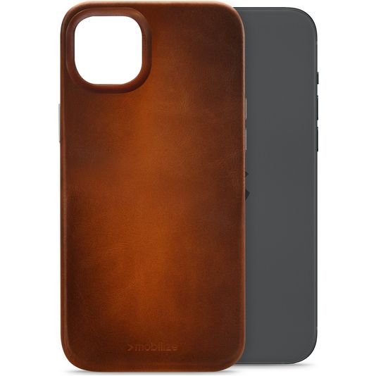Mobilize Premium iPhone 15 Plus MagSafe Hülle Echtes Leder Backcover - Burned Cognac