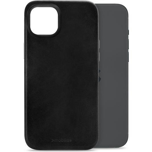 Mobilize Premium iPhone 15 Plus MagSafe Hülle Echtes Leder Backcover - Schwarz