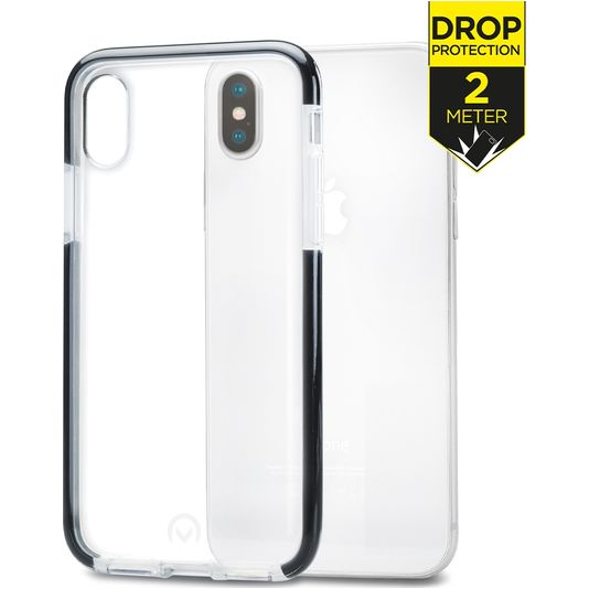 Schütze dein Apple iPhone XS vor Schäden mit dem Mobilize Shatterproof Backcover aus stabilem Kunststoff. Die Hülle kommt in der Farbe transparent / schwarz und deckt die Rückseite und die Seite deines Handys ab. Die Vorderseite bleibt mit diesem Backcover frei, sodass dein Bildschirm immer direkt zugänglich ist.