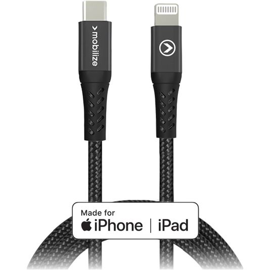 Mobilize Strong Nylon USB-C auf Apple Lightning MFI Kabel 1 Meter - Schwarz