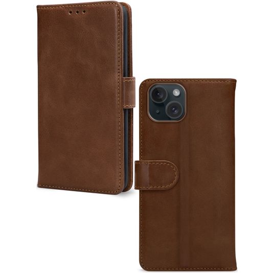Mobilize Wallet iPhone 15 Hülle Echtes Leder Klapphülle Geldbörse - Braun