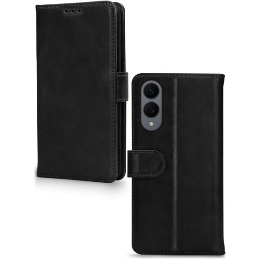 Mobilize Wallet Samsung Galaxy S25 Edge Hülle Echtes Leder Klapphülle Geldbörse - Schwarz