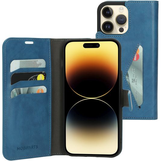 Mobiparts Classic Wallet iPhone 14 Pro Max Hülle Klapphülle Geldbörse - Steel Blue