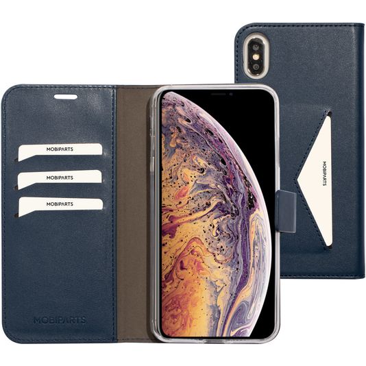 Willst du eine Apple iPhone XS Max Hülle mit Rundum-Schutz und einem stylischen und praktischen Design? Dann ist diese Mobiparts Classic Wallet Klapphülle für Apple iPhone XS Max die perfekte Wahl. Die Klapphülle ist aus hochwertigem Kunstleder gefertigt und kommt in der Farbe blau. Mit einer Klapphülle ist dein Apple iPhone XS Max rundum gut geschützt, auch der empfindliche Bildschirm. Die Klappe öffnet sich seitlich wie ein Buch und schließt sich fest mit einem Magnetverschluss. Es gibt Platz für 4 Karten, damit du deine Bankkarte oder deinen Ausweis immer zur Hand hast.