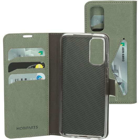 Willst du eine Samsung Galaxy S20 Hülle mit Rundum-Schutz und einem stylischen und praktischen Design? Dann ist diese Mobiparts Classic Wallet Klapphülle für Samsung Galaxy S20 die perfekte Wahl. Die Klapphülle ist aus hochwertigem Kunstleder gefertigt und kommt in der Farbe stone green. Mit einer Klapphülle ist dein Samsung Galaxy S20 rundum gut geschützt, auch der empfindliche Bildschirm. Die Klappe öffnet sich seitlich wie ein Buch und schließt sich fest mit einem Magnetverschluss. Es gibt Platz für 4 Karten, damit du deine Bankkarte oder deinen Ausweis immer zur Hand hast.