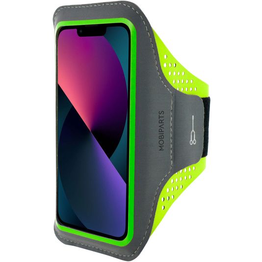 Mobiparts Comfort Fit Handyhalterung Joggen iPhone 13 Mini Sporthülle Neopren Sportarmband - Neon Green