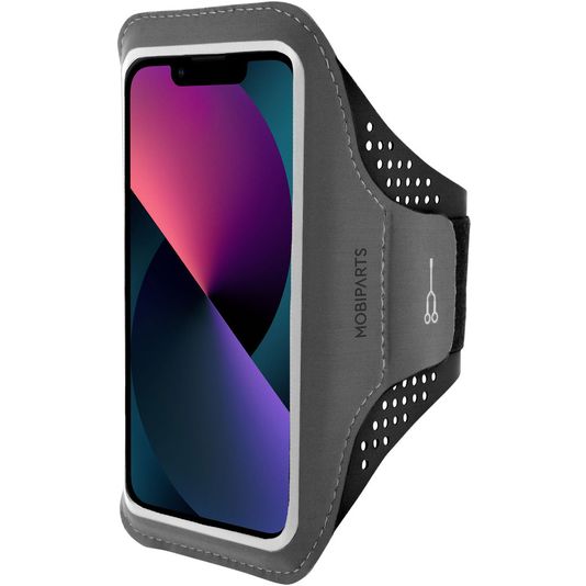 Mobiparts Comfort Fit Handyhalterung Joggen iPhone 13 Pro Sporthülle Neopren Sportarmband - Schwarz