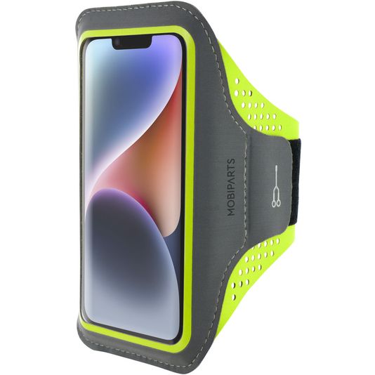 Mobiparts Comfort Fit Handyhalterung Joggen iPhone 14 Sporthülle Neopren Sportarmband - Neon Green
