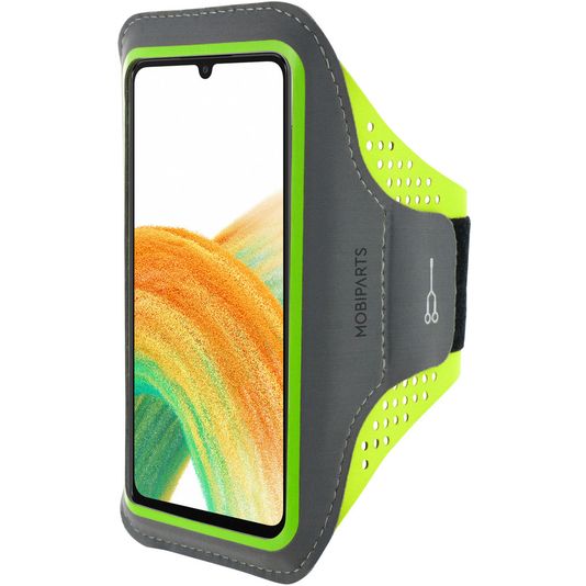 Nimmst du dein Samsung Galaxy A33 beim Sport mit? Dann ist dieses Mobiparts Comfort Fit Sportband in der Farbe neon green genau das Richtige für dich! Mit dem Samsung Galaxy A33 Sportbänder kannst du jetzt sicher und bequem Musik hören oder die Statistiken deines Trainings verfolgen, ohne dass dein Handy im Weg ist oder herunterfallen und Schaden nehmen kann.