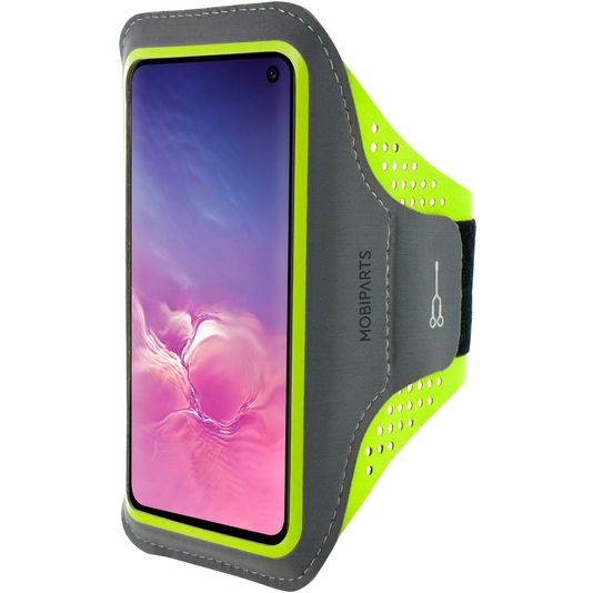 Mobiparts Comfort Fit Handyhalterung Joggen Samsung Galaxy S10e Sporthülle Neopren Sportarmband - Neon Green