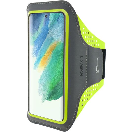 Mobiparts Comfort Fit Handyhalterung Joggen Samsung Galaxy S21 FE Sporthülle Neopren Sportarmband - Neon Green