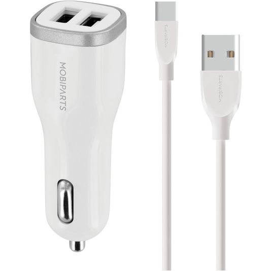 Mobiparts Dual USB Auto Ladegerät USB-C 1 Meter 12W 2.4A - Weiß