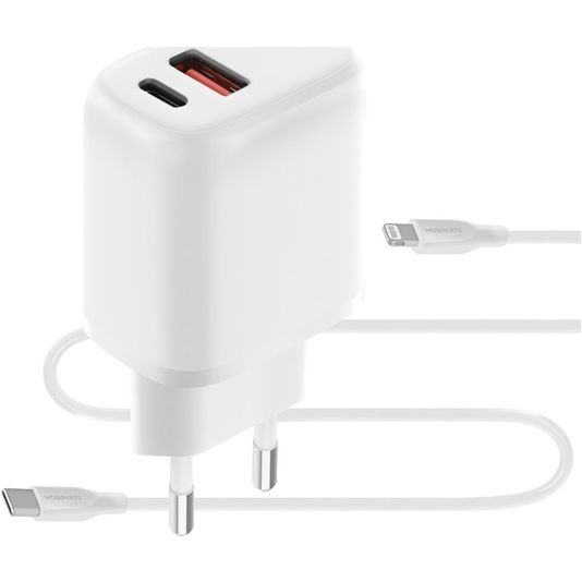 Mobiparts Dual USB / USB-C Ladegerät Apple Lightning 1 Meter 20W 3A - Weiß