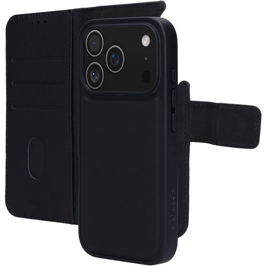 Mobiparts iPhone 17 Pro Hülle Echtes Leder Abnehmbare 2in1 Klapphülle Geldbörse - Schwarz