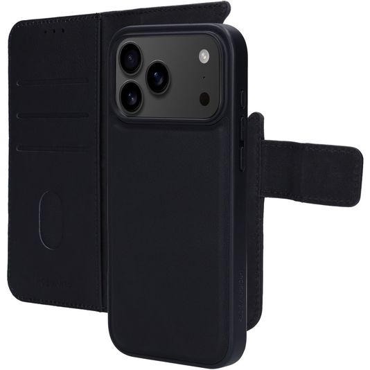 Mobiparts iPhone 17 Pro Max Hülle Echtes Leder Abnehmbare 2in1 Klapphülle Geldbörse - Schwarz