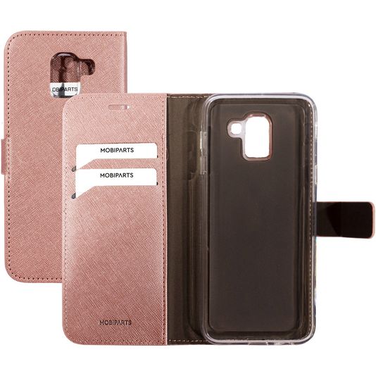 Mobiparts Saffiano Wallet Samsung Galaxy J6 (2018) Hülle Klapphülle Geldbörse - Pink