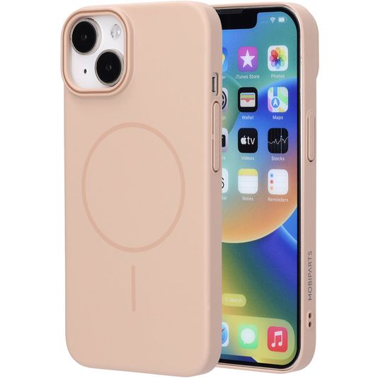 Nutze die Vorteile von MagSafe mit deinem Apple iPhone 14 mit der Mobiparts Slim Line Apple iPhone 14 Backcover Hülle mit MagSafe Magnet. Die MagSafe Hülle besteht aus stabilem Kunststoff und ist in der Farbe dune sand erhältlich. Mit dieser Apple iPhone 14 MagSafe Hülle kannst du beliebiges MagSafe-Zubehör wie ein Ladegerät oder eine Halterung befestigen.