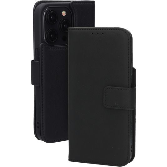 Mobiparts Wallet iPhone 15 Pro MagSafe Hülle Echtes Leder Klapphülle Geldbörse - Schwarz