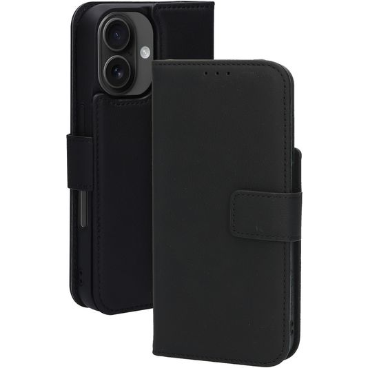 Mobiparts iPhone 16 MagSafe Hülle Echtes Leder Abnehmbare 2in1 Klapphülle Geldbörse - Schwarz