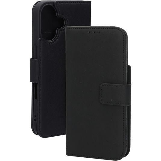 Mobiparts Wallet iPhone 16 MagSafe Hülle Echtes Leder Klapphülle Geldbörse - Schwarz