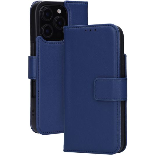 Mobiparts Wallet iPhone 16 Pro MagSafe Hülle Echtes Leder Klapphülle Geldbörse - Blau