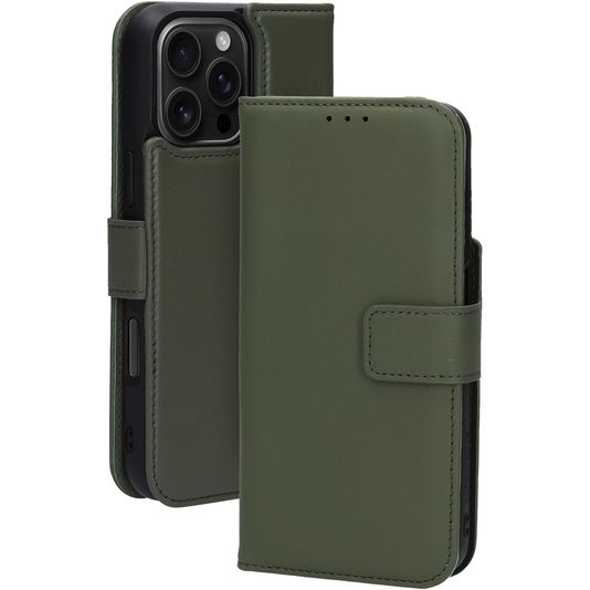 Mobiparts iPhone 16 Pro Max MagSafe Hülle Echtes Leder Abnehmbare 2in1 Klapphülle Geldbörse - Grün